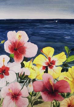 Hibiscus by the Sea 5" x 7" acrylic on canvas